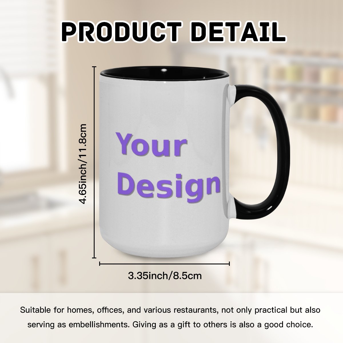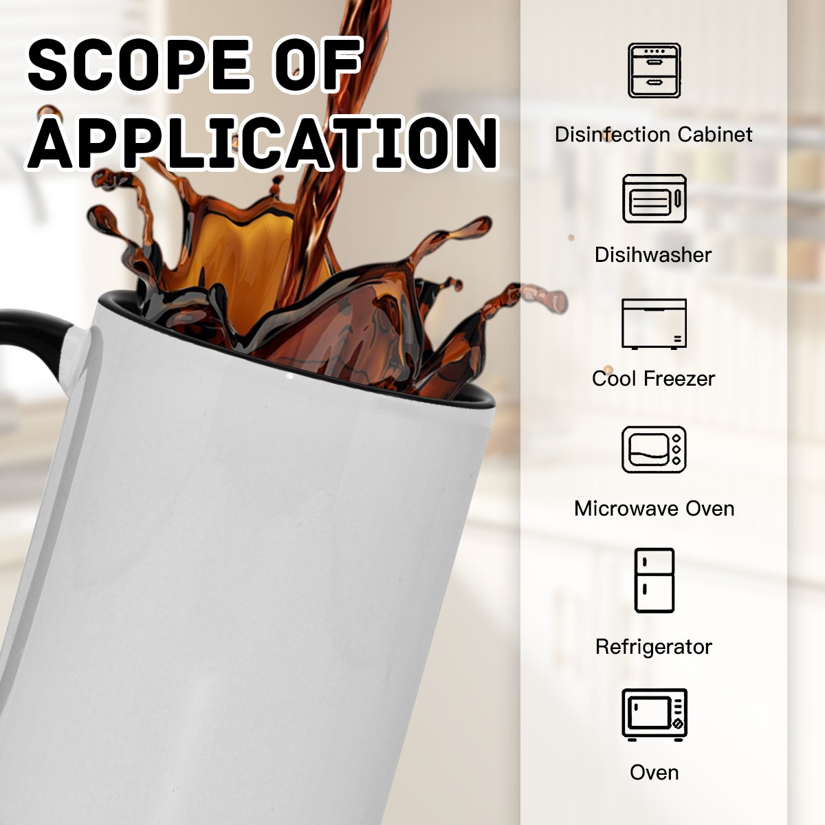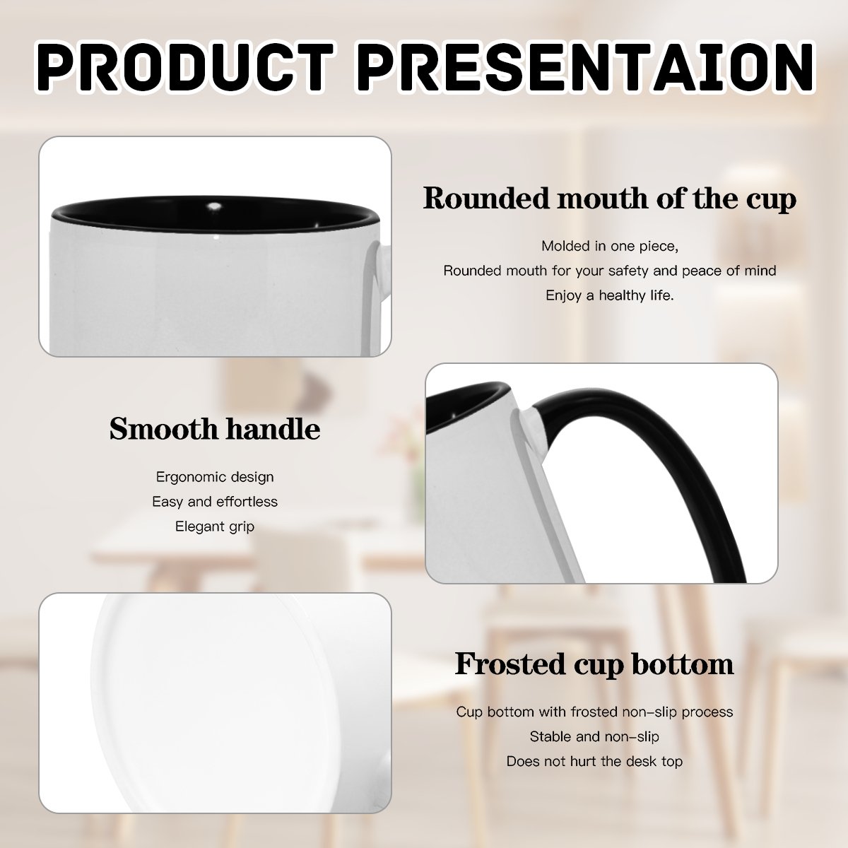 This bright white two-tone mug is made of high-quality ceramic, non-toxic and lead-free, with excellent durability and a luxurious feel. The cups come with comfortable handles that ensure safety and ease of grip, so you can easily hold and enjoy hot drinks without worrying about them slipping out of your hand, and come in any number of colors. Ideal for serving hot and cold drinks in a home or office environment, this cup is extremely durable and has a long life, and can be safely placed in the microwave or dishwasherNo need to worry about cracking or breakage.